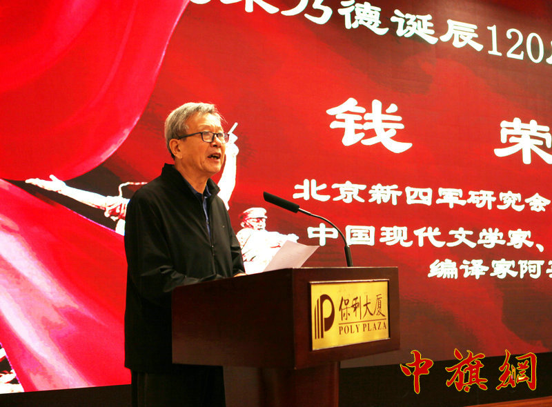 中国现代文学家、剧作家、批评家、编译家阿英之孙、北京新四军研究会三师分会副秘书长钱荣毅发言。讲述《阿英与宋乃德革命友情》片断。