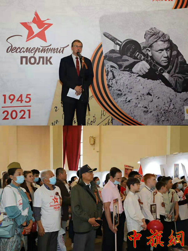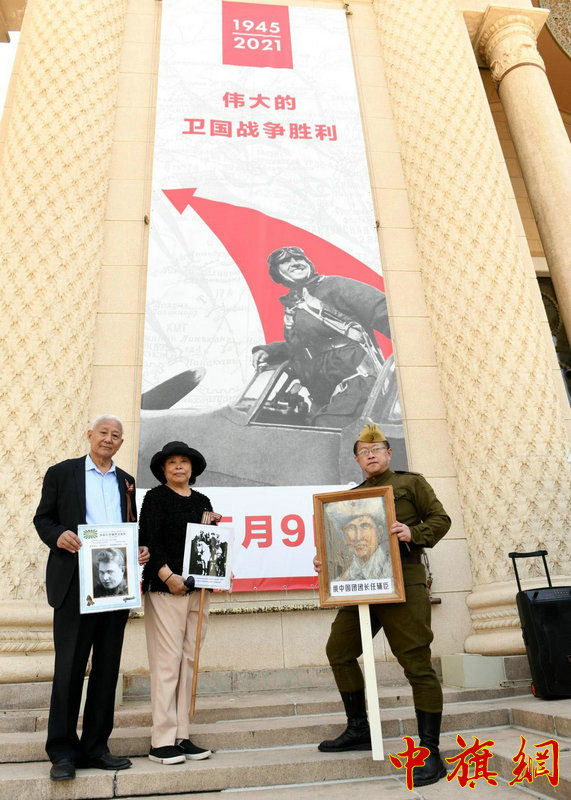 俄罗斯“不朽军团”感人阵容出现在展览馆广场。数百名中俄友人怀着无比激动的心情,携带家人,手捧着、高举着为世界和平浴血奋战的先辈亲人们的照片,盛装出席活动,一同重温那段悲壮的岁月,深情缅怀先辈们在抗击法西斯侵略的战争中气壮山河的光辉事迹。