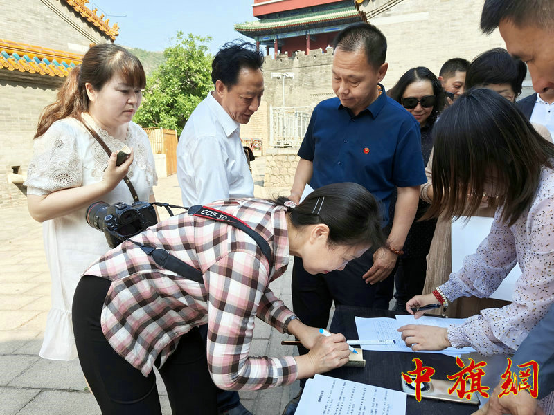 我为长城添块砖!爱我中华,修我长城!图为中国长城学会副会长董耀会在竹瓦上签字。