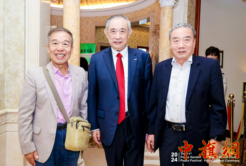 北京国际和平基金会主席李若弘(中)和中国国际友人研究会会长刘昕生(右)、赵福臻