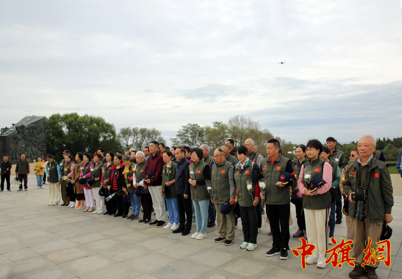 庄严的《献花曲》中,革命后代们抬着花篮,缓缓走向百团大战纪念碑。全体人员肃立默哀,敬献鲜花,向在百团大战中牺牲的烈士们表达深切缅怀和崇高敬意。