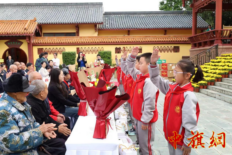 中国战略与管理研究会志愿军研究分会会长、志愿军第二任司令员兼政委邓华上将之子邓穗,志愿军研究分会常务副会长肖平,志愿军研究分会副会长、空军首任司令员刘亚楼上将之子刘煜滨,志愿军研究分会副会长、志愿军38军军长梁兴初中将之子梁晓东,志愿军精神宣讲团成员、志愿军首任司令员兼政委彭德怀元帅侄孙彭宇等,现场向10位志愿军老战士赠送了慰问品,少先队员们怀着崇敬的心情,欢快地向志愿军老战士敬献鲜花。