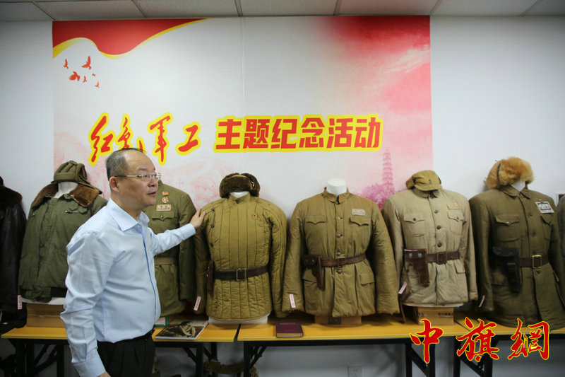 随后,参观了红色军工展,其中,展览服装涵盖了从建国初期到新时代的各个时期军服。灰色的第一套棉袄转为土黄色的演变,五五式将军常服的威严,空降兵服装的飒爽等等,每一件展品都是空军发展的生动见证。特别值得一提的是,张云逸大将之子张光东捐赠的父亲张云逸大将穿过的军服、胡乔木女儿胡木英捐赠的胡乔木同志穿过的十几套珍贵服装,为展览增添了厚重历史分量。