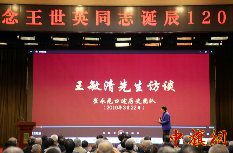 纪念大会从播放中国传媒大学崔永元口述历史研究中心当年采制的短片拉开序幕,主席台的大屏幕上,王敏清生前讲述父亲王世英鲜为人知的故事,一下子把嘉宾们带进了王世英不平凡的光辉世界。