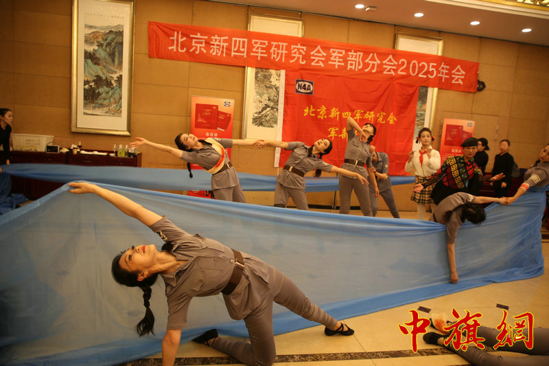 年会的第三议程在深情而震撼的文艺 演出中达到高潮。由北京铁流艺术团为纪念抗战胜利八十周年特别创作的原创情景舞蹈《皮岔河上九朵莲》率先登场。该作品由解放军艺术学院舞蹈教授王怡风与艺术团全体团员倾力创作,中央音乐学院刘少宇老师负责音乐制作。舞蹈艺术地再现了1941年夏季,新四军鲁艺华中分院八名女学员和一名女记者在皮岔河畔遭日军合围,宁死不屈、集体投河、舍生取义的悲壮故事。九位女英雄如莲花般圣洁的生命在舞台上绚烂绽放又毅然凋零,其视死如归的气节深深撞击着每一位观众的心灵,不少人情难自已,潸然泪下。