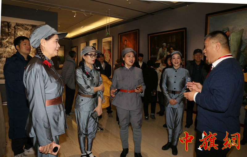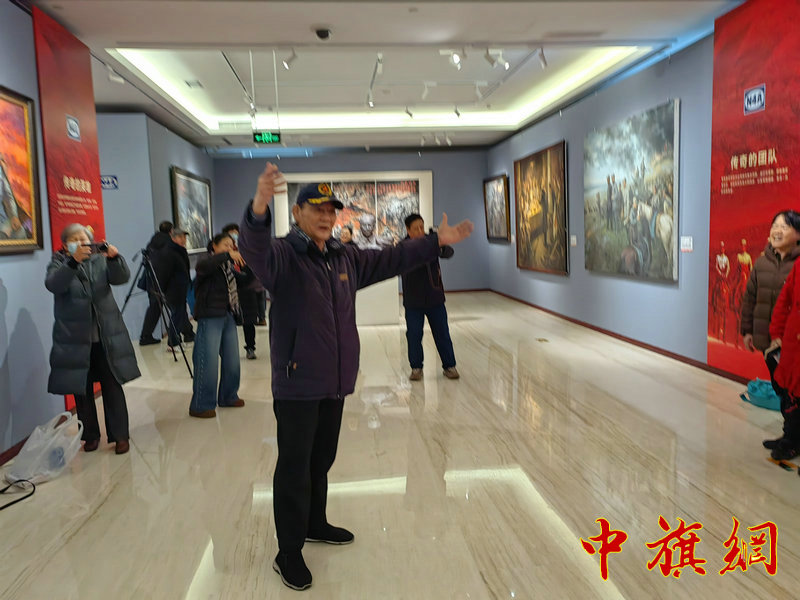 在巨幅画作“骑兵团”前,全体观者跟着总会办公室主任钱宏伟纵情高歌《骑兵团之歌》,活动结束后,所有参展人员(包括画家、多个兄弟分会代表及幕名前来观展的社会人员)与我们一起高唱“人民军队忠于党”…。