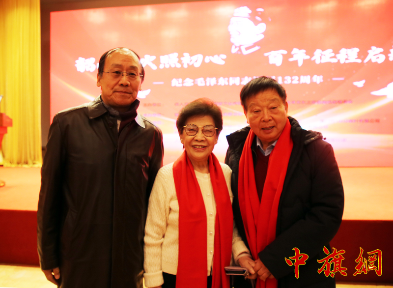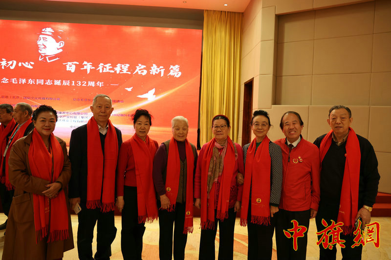 毛主席亲属及身边工作人员:毛主席生活管理员吴连登,李大钊孙女李小玲,中南海服务处的牛秀琴、田玉梅、孙美玉等,人民大会堂服务处的侯桂珍、邱桂荣、原淑琴等,毛主席专列餐厅主任周树花及李建新、解秀英、李桐彦、刘习琴等,毛主席警卫:刘纪春、马全发、孙振法、石振茹、党文富、潘兴利、郑敬国、等 50余人,及36个部委有关负责人;京剧表演艺术家李佩红,民政部中益老龄健康事业发展中心主任焦委,中国报业集团总编胡线勤,农科院智能数控生态土壤修复机发明家腾中信,中红网总编辑助理常魁星,中旗网总编辑张伊 及媒体、律师、企业、健康、保险、科研、军事、医疗、出版等人员参加了活动。中央电视台巩妍主持。