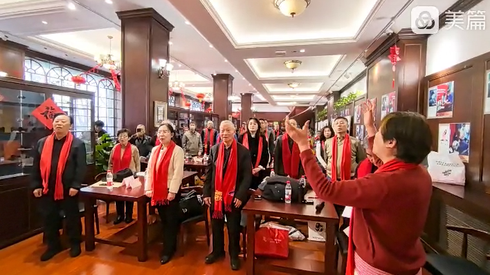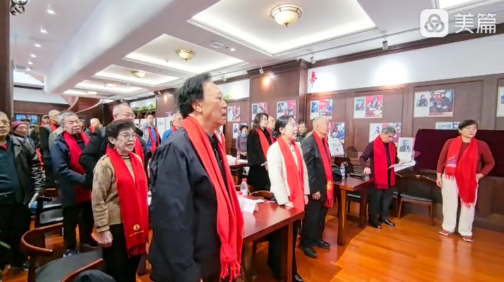 “东方红,太阳升……”在主持人、北京生肖集邮研究会常务副会长刘绪湘的引领下,全场肃立,齐声合唱《东方红》。歌声庄严而深情,嘉宾佩戴着毛主席像章和红色围巾,鲜明的“中国红”,不仅是对伟人的深切缅怀,更形象地诠释了“传承红色基因,铸牢中华民族共同体意识”。