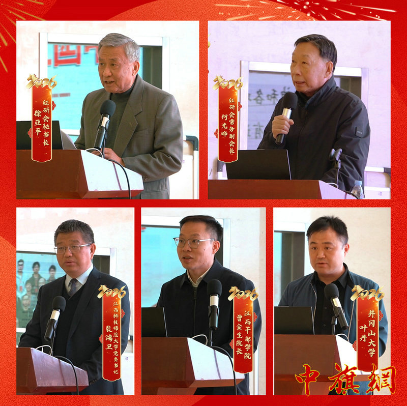 年会由红研会秘书长徐亚平主持,议程紧凑高效、内容务实厚重。会上,红研会常务副会长何光晔作2025年工作总结及2026年工作安排报告,全面复盘过去一年工作成效,明确新一年工作方向;江西科技师范大学党委书记裴鸿卫,江西干部学院院长曾金生、井冈山大学高等教育研究所所长叶丹先后致辞,对会议召开表示祝贺,对深化红色研究与传承合作提出期望;5家单位会员领导依次介绍工作情况,围绕后续深度合作交流思路、建言献策。