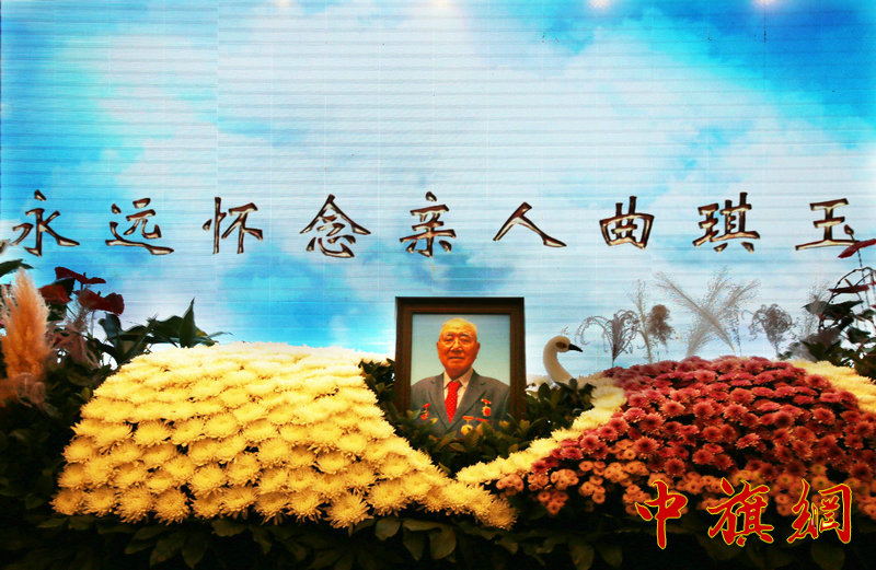 2月7日上午9时整,告别厅庄严肃穆,哀乐低徊,正前方悬挂着曲琪玉同志慈祥遗像,曲琪玉同志的遗体覆盖着鲜红的中国共产党党旗,安卧在鲜花翠柏丛中。这位将一生奉献给党的革命事业、保卫毛主席、保卫党中央的忠诚战士,在此接受人们最后的致敬与深切告别。