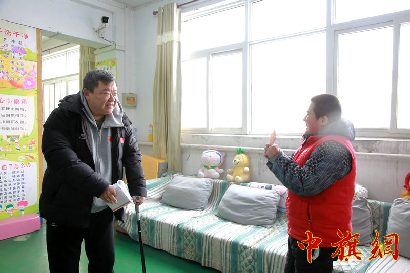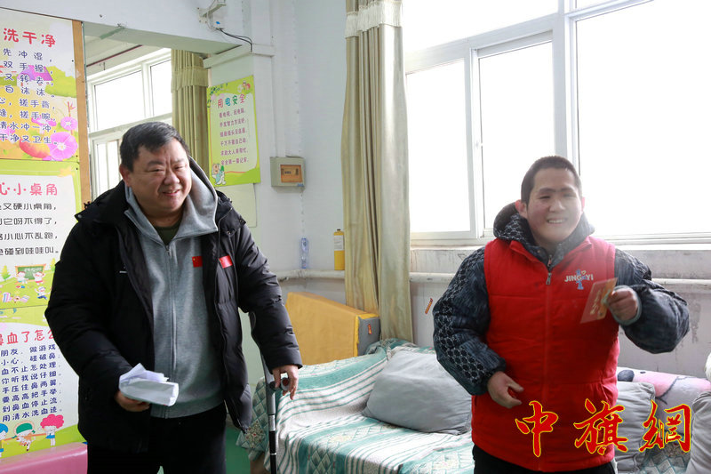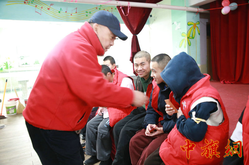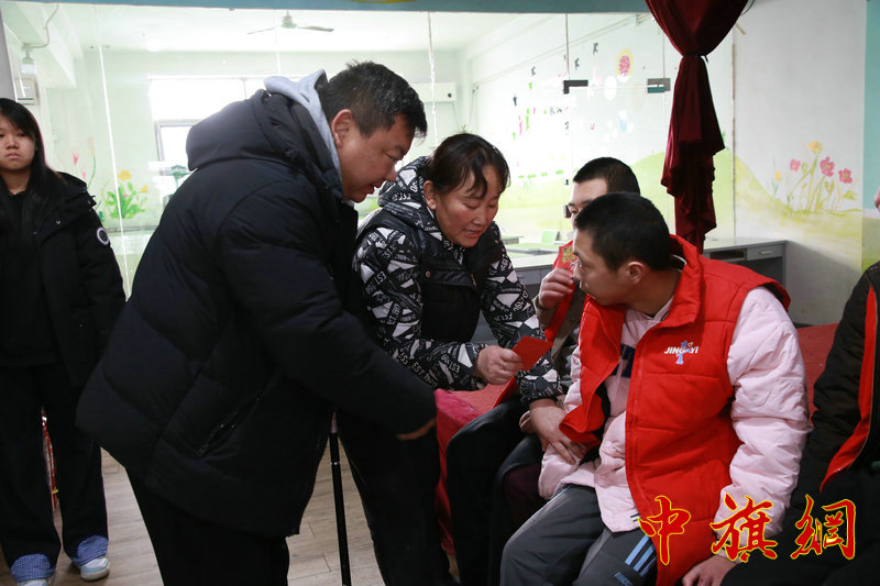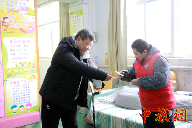 徐京玲主任 拄着拐杖 提前送给孩子们压岁钱,收到钱后,孩子非常开心。