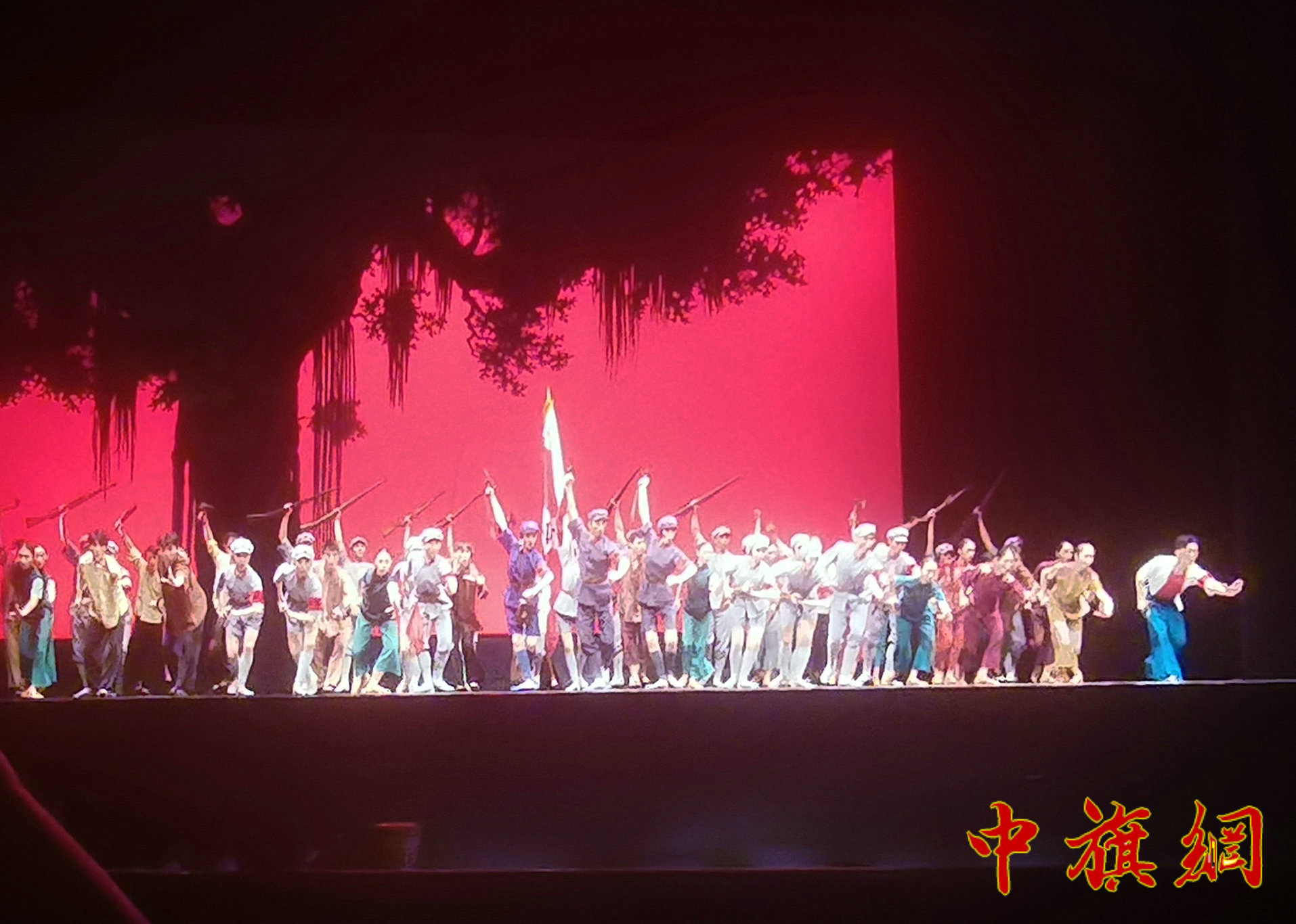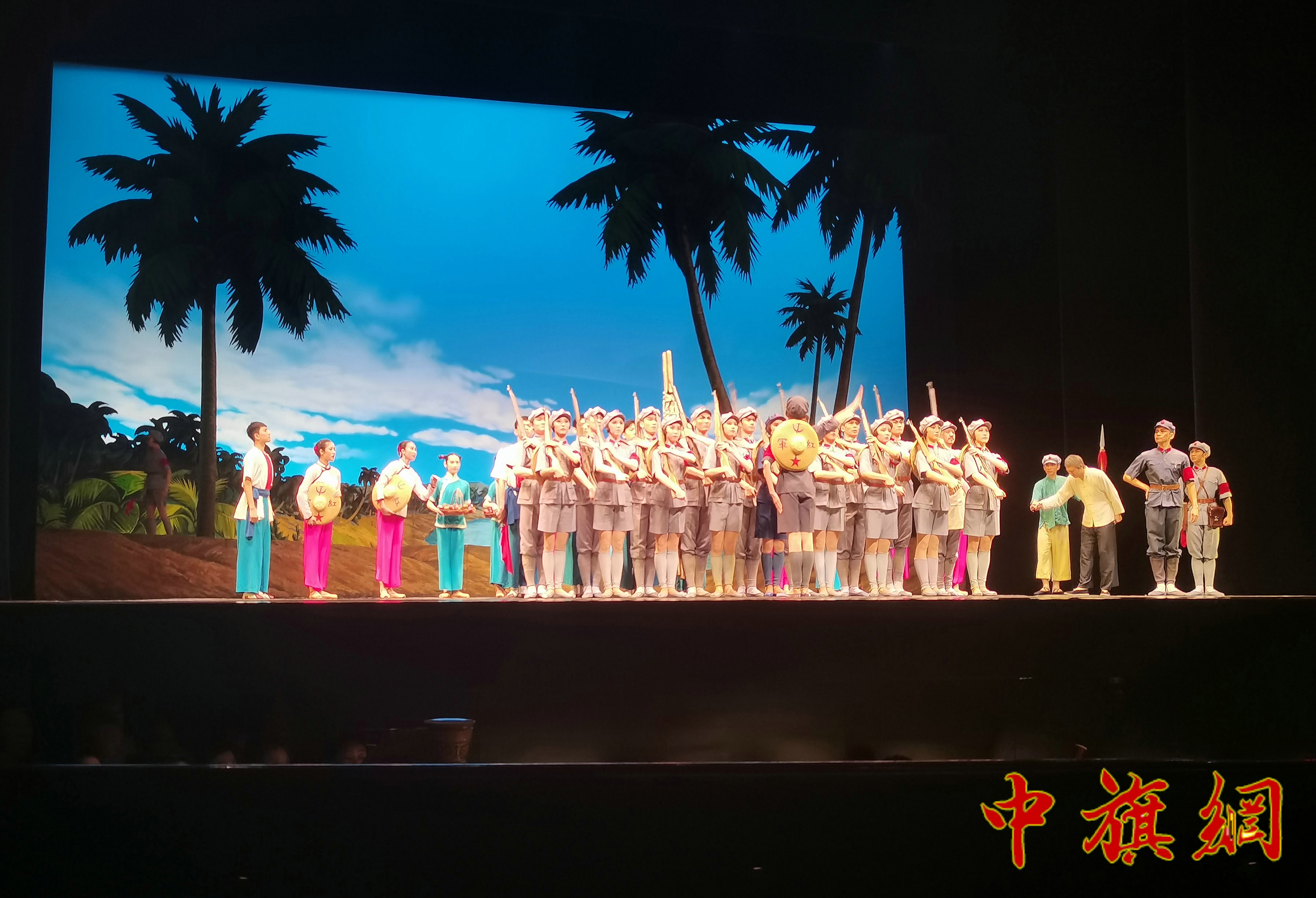 舞台上,从漆黑的椰林到红色根据地广场,从南霸天的庭院到山口阵地,一幕幕场景气势恢宏。铿锵的《娘子军连歌》一次次响起,战鼓激越,舞步刚劲。无论是“常青指路”的深明大义,还是琼花“倒踢紫金冠”的悲愤抗争,亦或是洪常青大义凛然、英勇就义的壮烈场景,都深深震撼着在场的每一位观众。演员们用充满张力与深情的演绎,生动描绘了革命先辈不屈不挠的钢铁意志和军民一家的鱼水深情,将那段烽火岁月中的革命浪漫主义情怀展现得淋漓尽致。