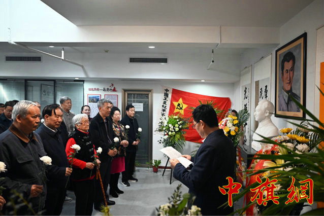 刘志丹研究委员会常务副秘书长路光辉主持追思会,追思会在庄严肃穆的气氛中开始,刘志丹研究委员会会长刘玉兰,西安志丹商会会长王中上前整理花篮。来自政府、高校、企业以及省外各界代表列队为刘志丹将军塑像献花。